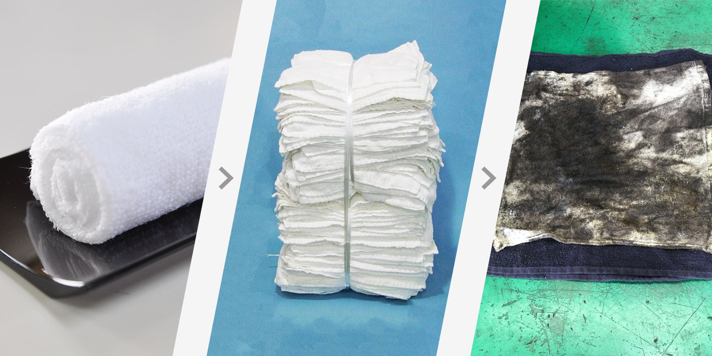 おしぼりの原材料は木綿で、毎年畑で栽培されています。布おしぼりはリユースしているので、ゴミになりません。また、何回も使用し薄くなったものは、整備工場などでウエス(雑巾)としてボロボロになるまで使用し、廃棄しています。
